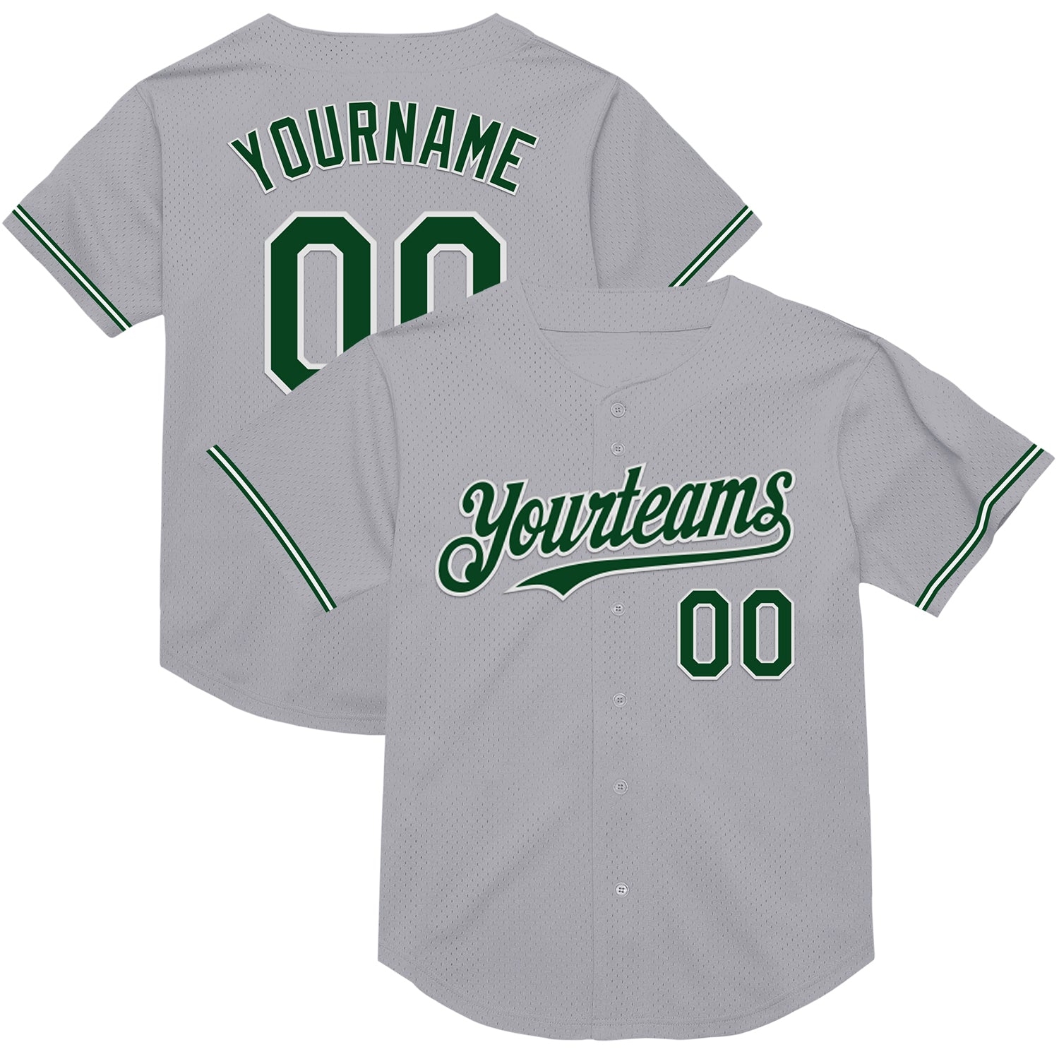 Custom Gray Green-White Mesh Authentic Throwback Baseball Jersey