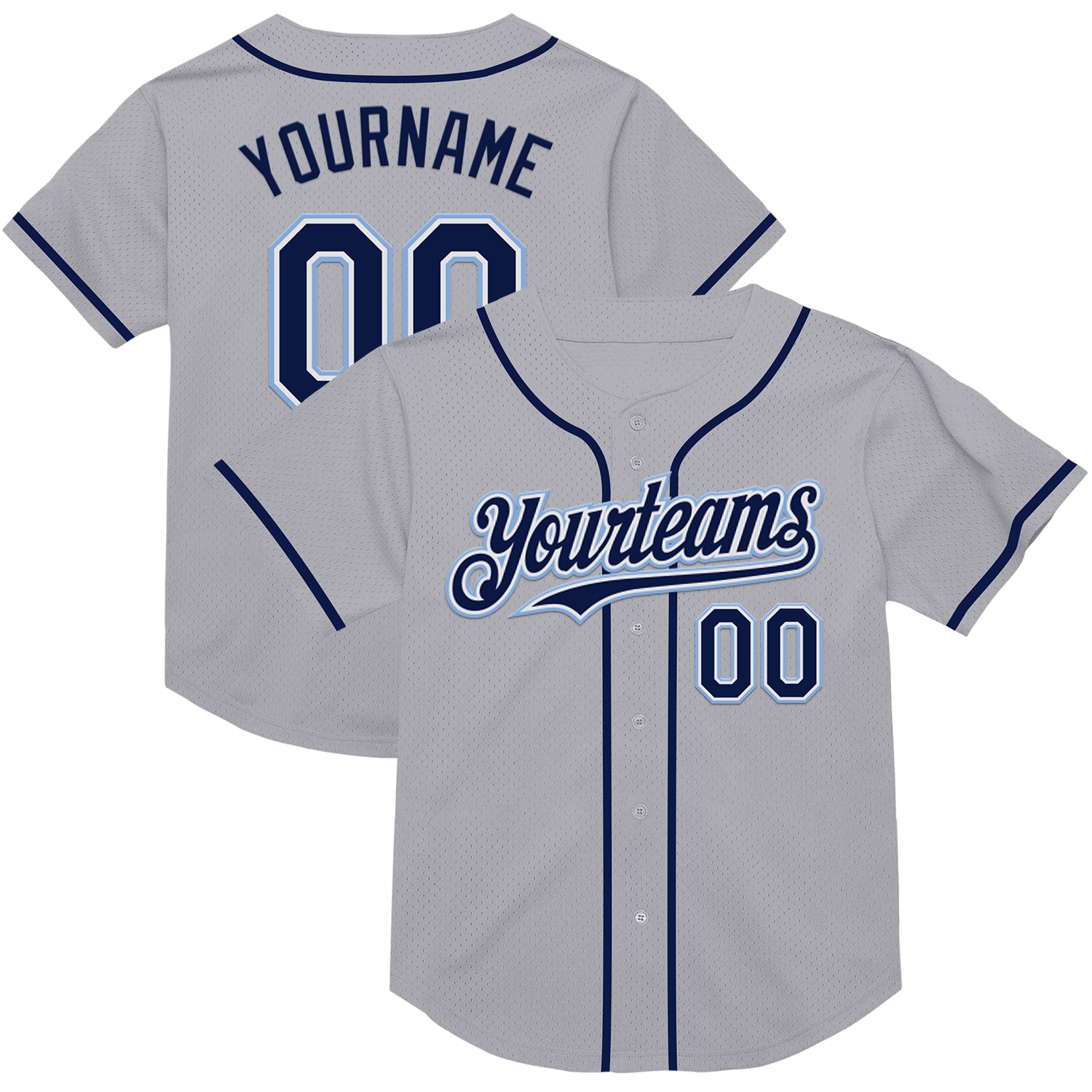 Custom Gray Navy-Light Blue Mesh Authentic Throwback Baseball Jersey