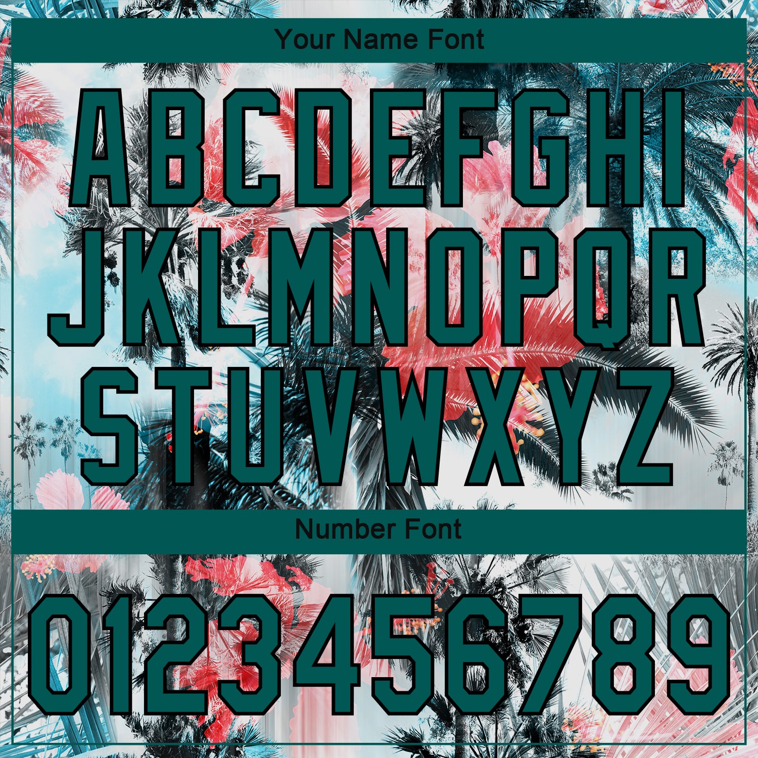 Custom White Midnight Green-Black 3D Pattern Design Hawaii Palm Trees Authentic Baseball Jersey