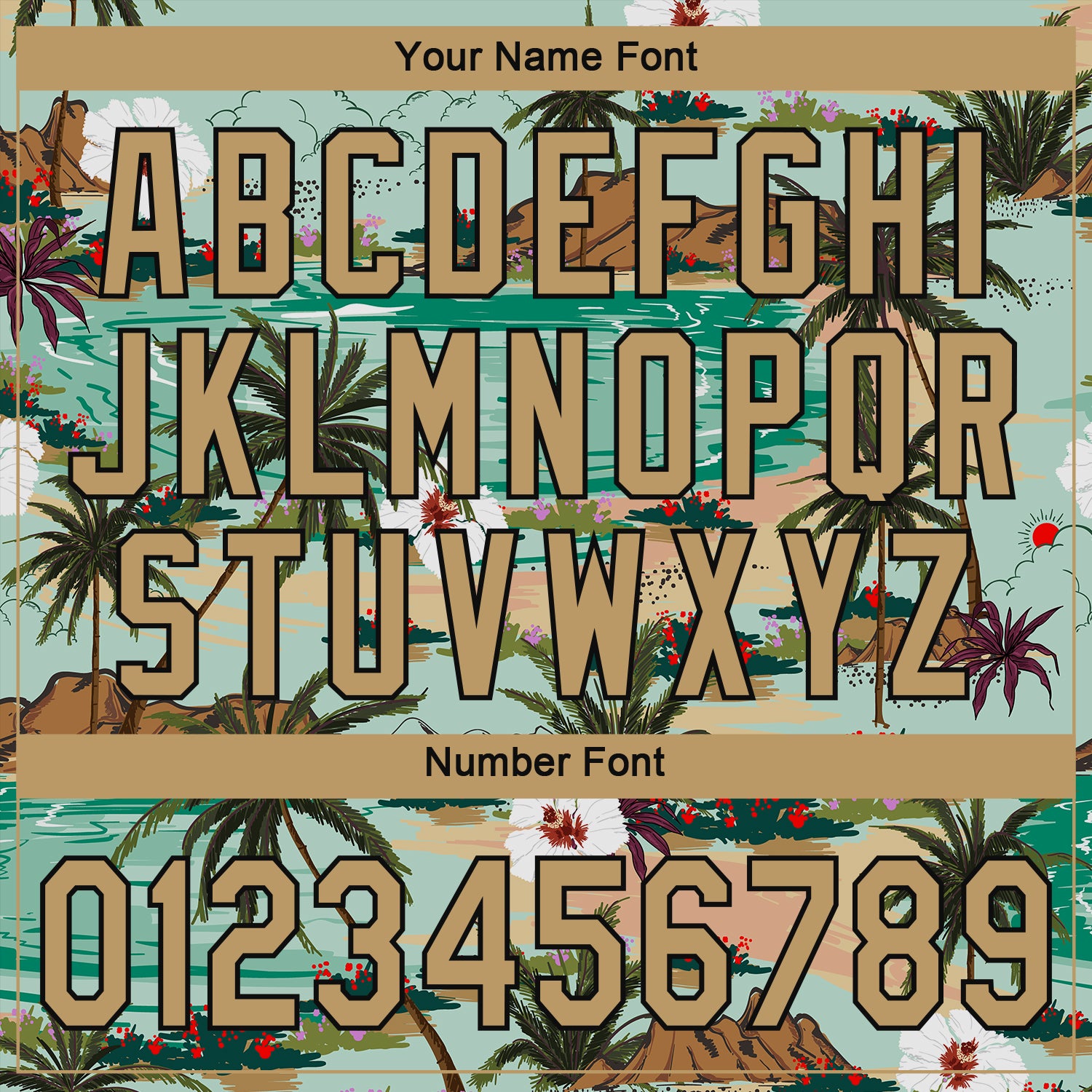 Custom Aqua Old Gold-Black 3D Pattern Design Hawaii Palm Trees And Flowers Authentic Baseball Jersey