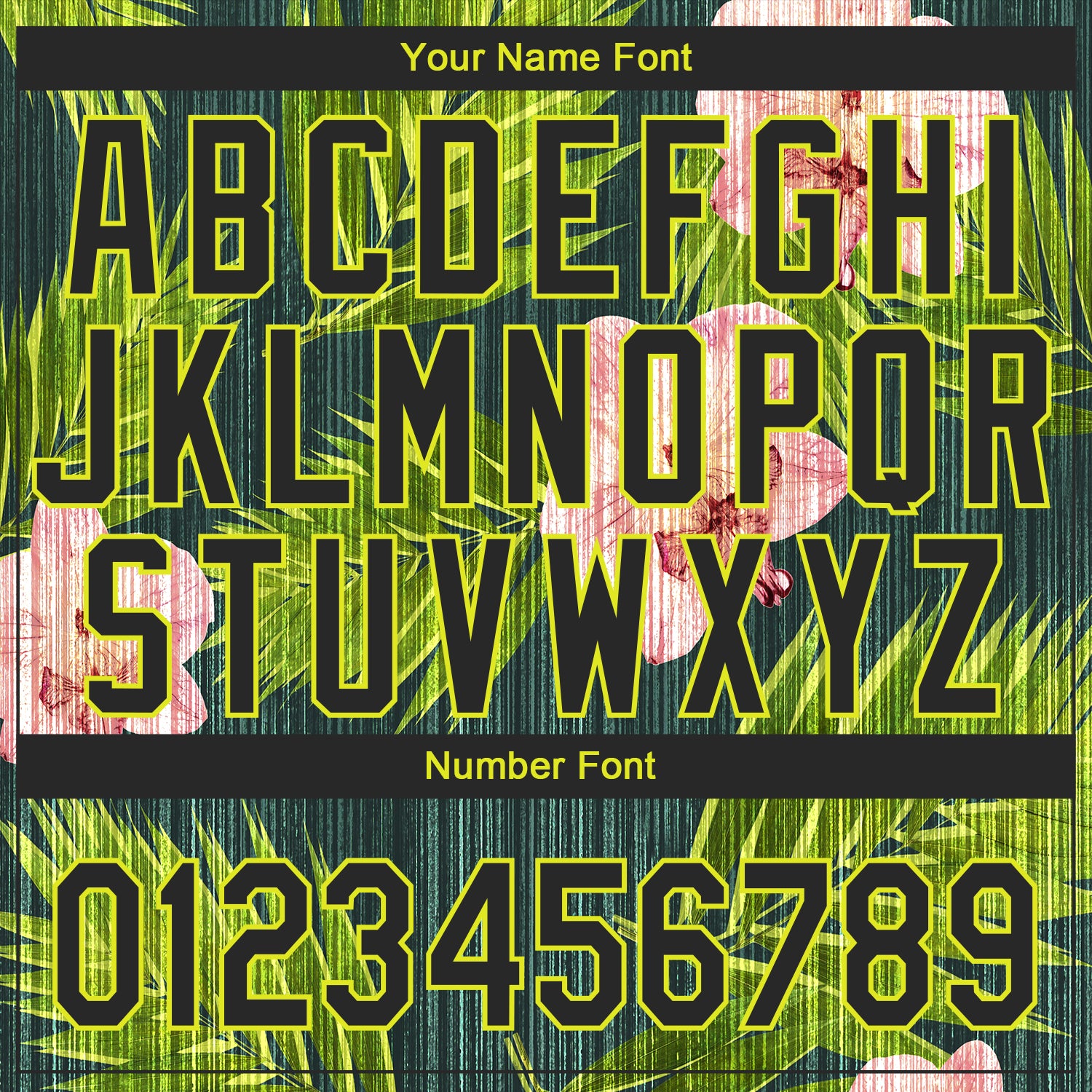 Custom Black Neon Yellow 3D Pattern Design Hawaii Tropical Palm Leaves With Orchids Authentic Baseball Jersey