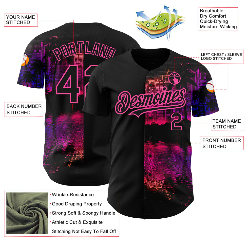 Custom Black Pink 3D Pattern Design Hawaii Palm Trees Authentic Baseball Jersey