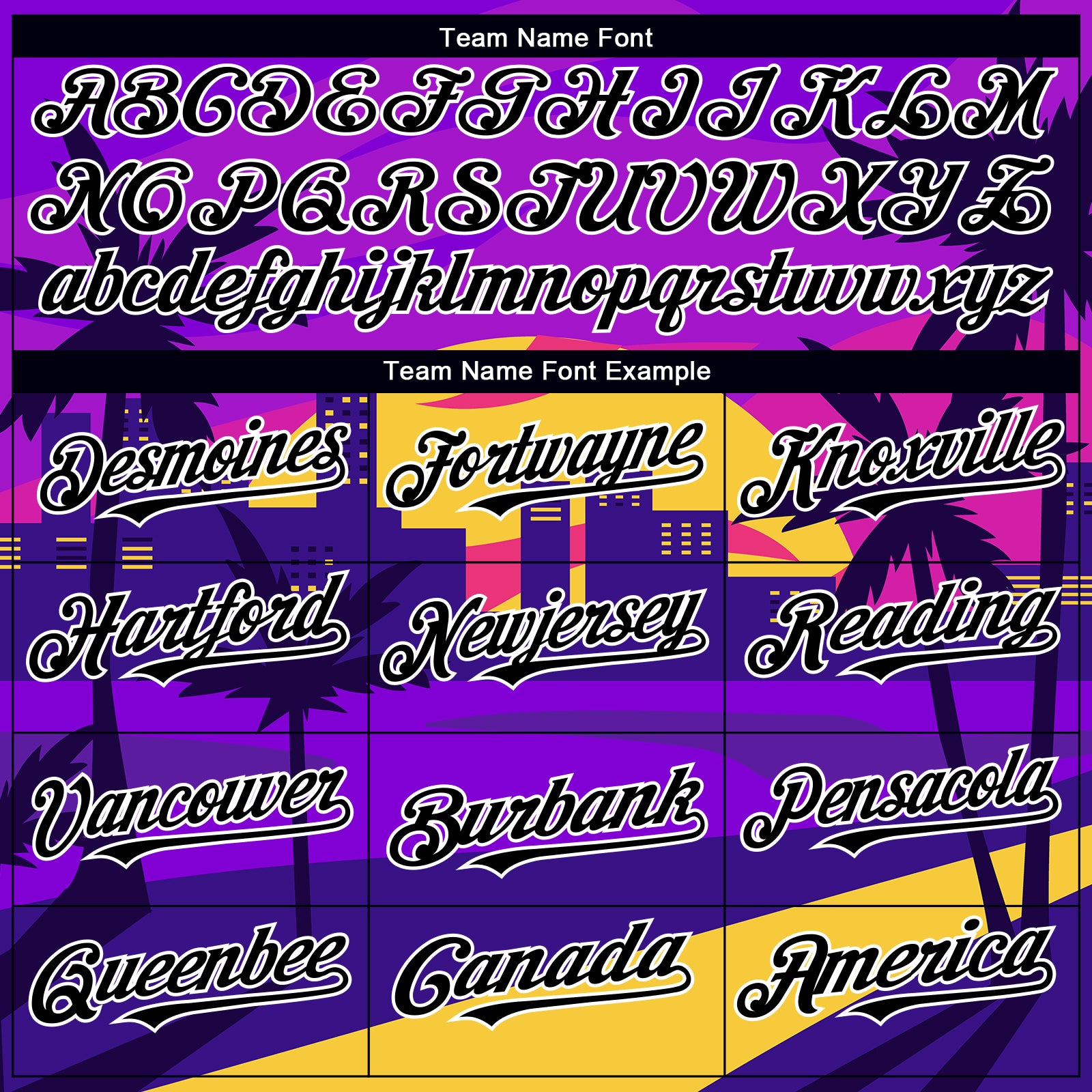 Custom Purple Black-White 3D Pattern Design Hawaii Palm Trees Authentic Baseball Jersey