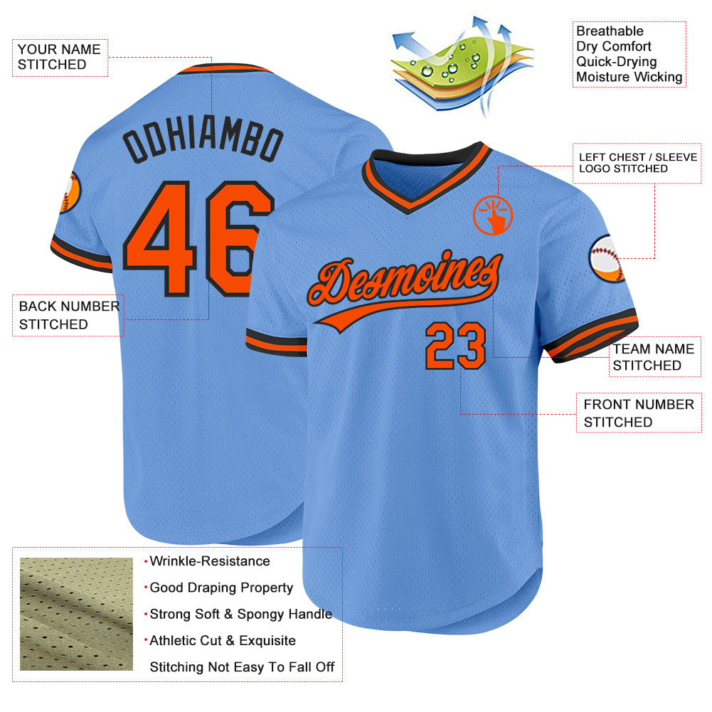 Custom Light Blue Orange-Black Authentic Throwback Baseball Jersey