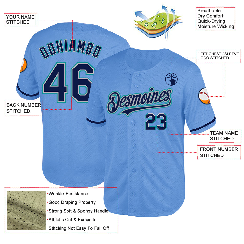 Custom Light Blue Navy Gray-Teal Mesh Authentic Throwback Baseball Jersey