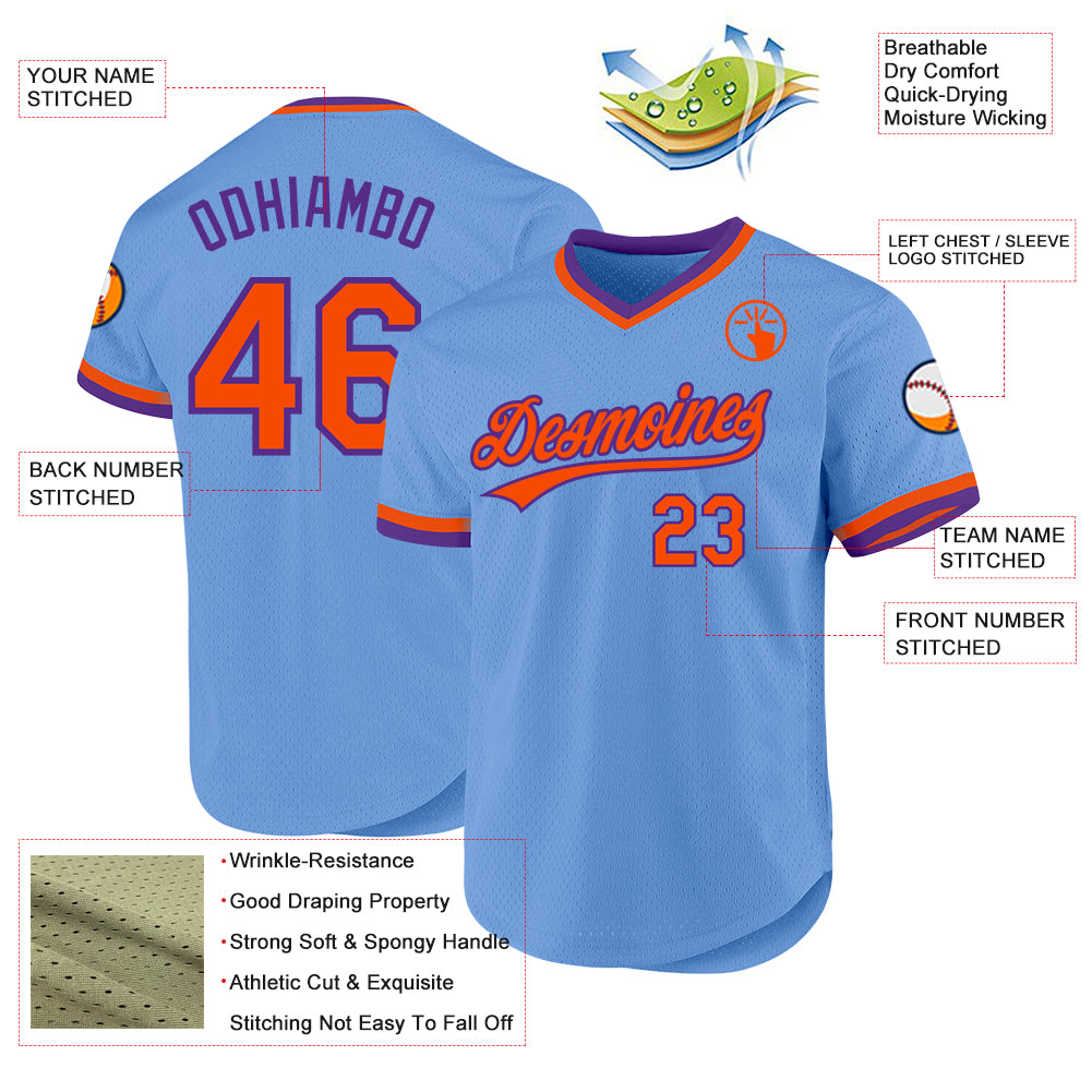 Custom Light Blue Orange-Purple Authentic Throwback Baseball Jersey