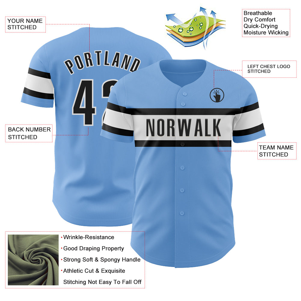 Custom Light Blue Black-White Authentic Baseball Jersey