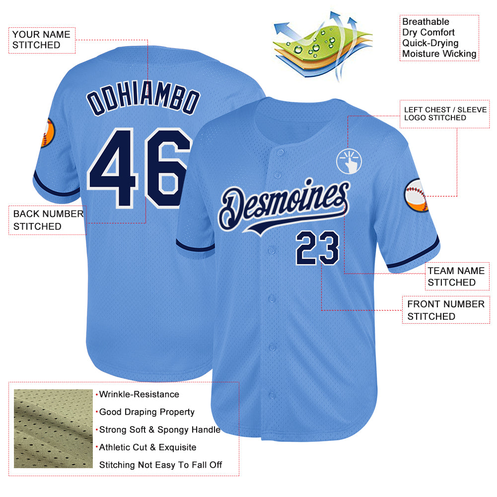 Custom Light Blue Navy-White Mesh Authentic Throwback Baseball Jersey