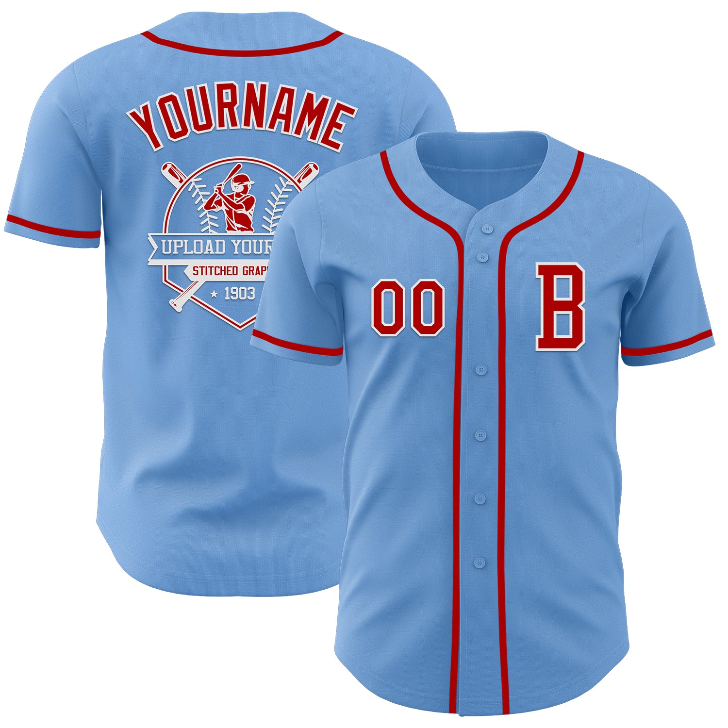 Custom Light Blue Red-White Authentic Baseball Jersey