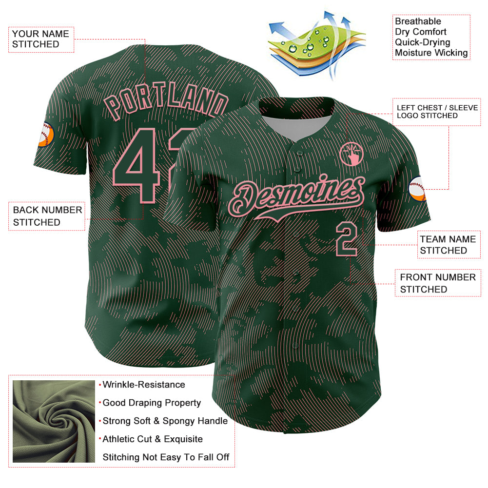 Custom Green Medium Pink Curve Lines Authentic Baseball Jersey