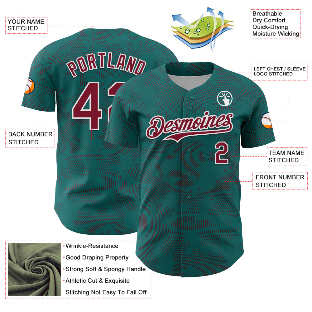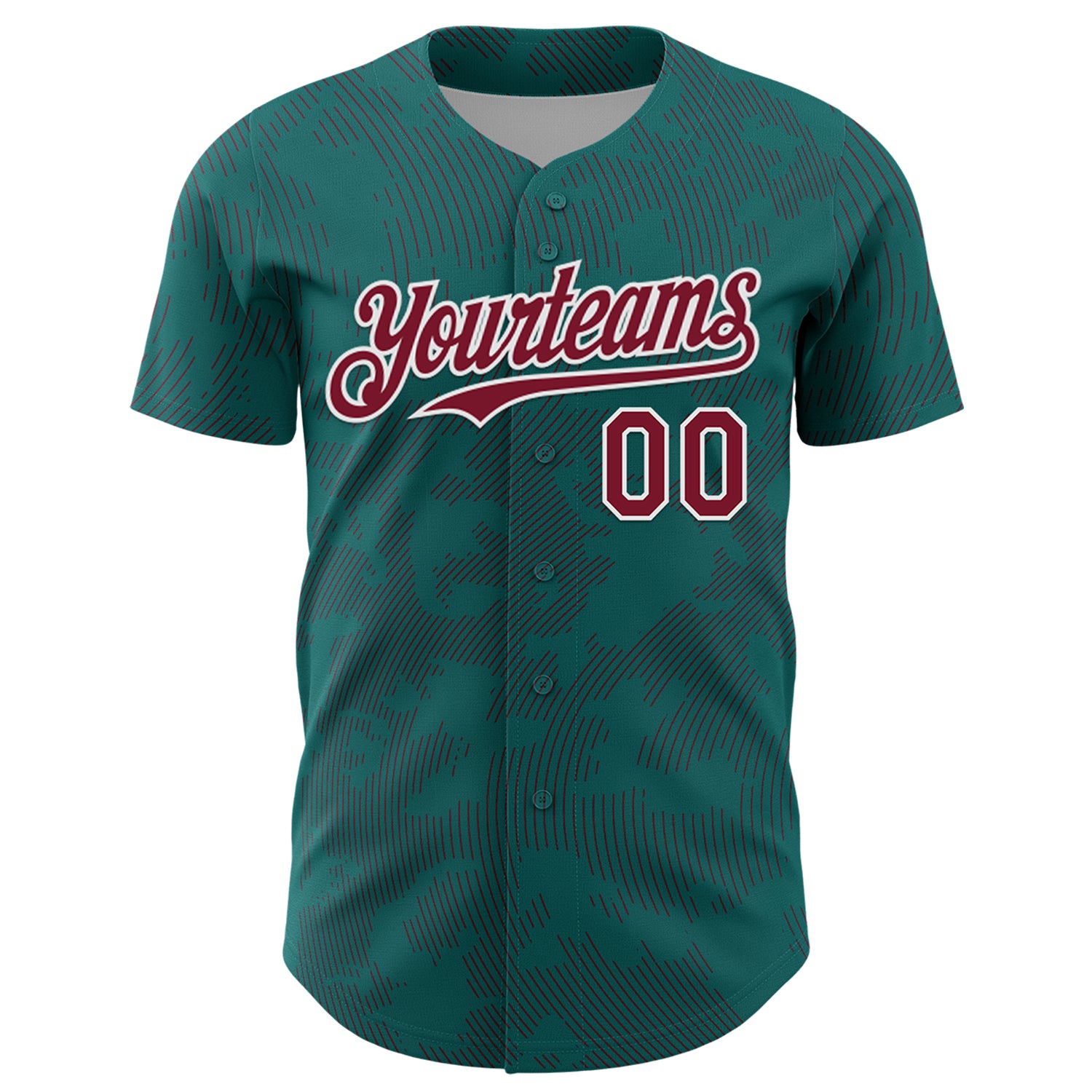 Custom Teal Crimson-White Curve Lines Authentic Baseball Jersey