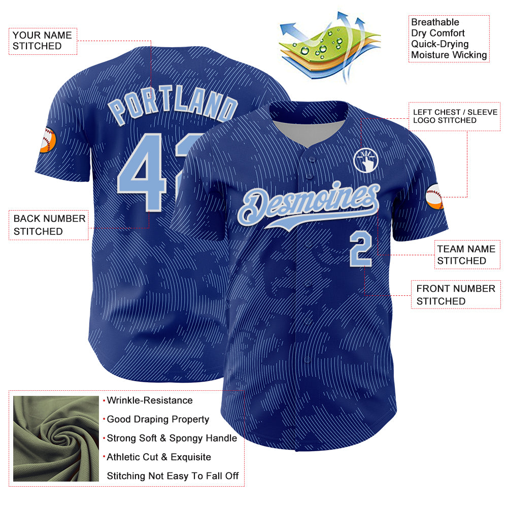 Custom Royal Light Blue-White Curve Lines Authentic Baseball Jersey