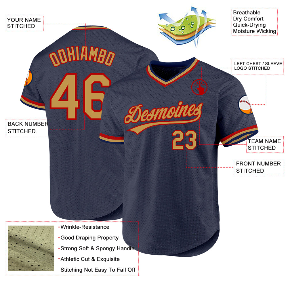 Custom Navy Old Gold-Red Authentic Throwback Baseball Jersey