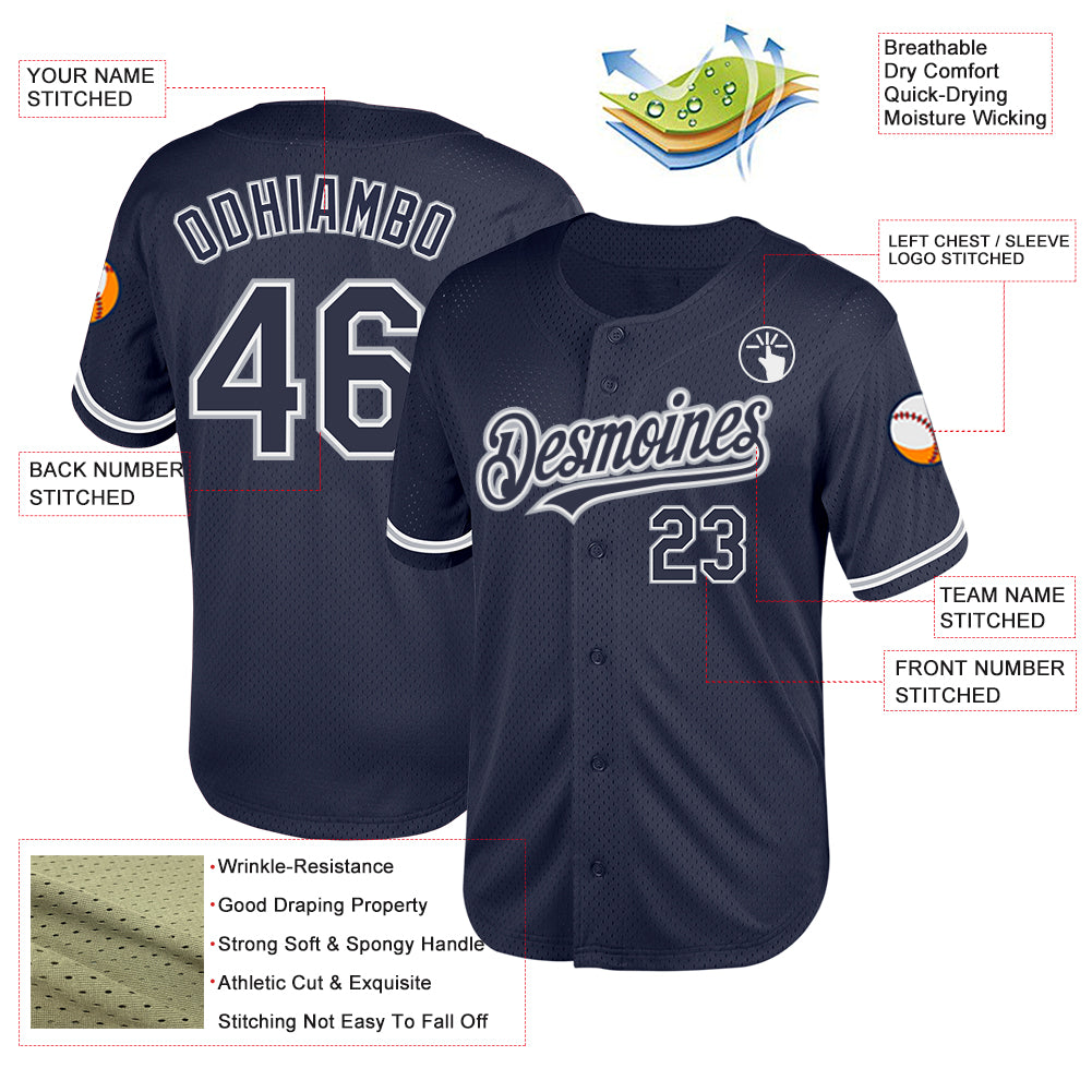 Custom Navy White-Gray Mesh Authentic Throwback Baseball Jersey