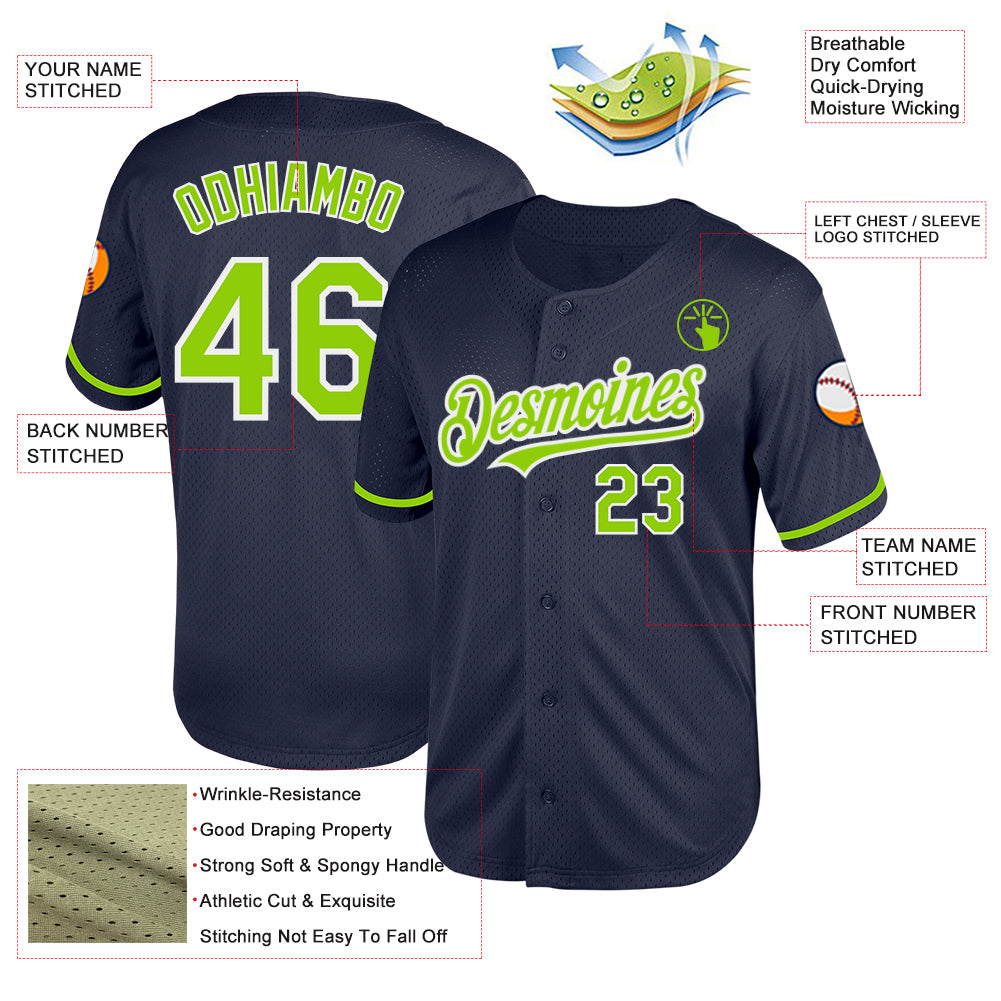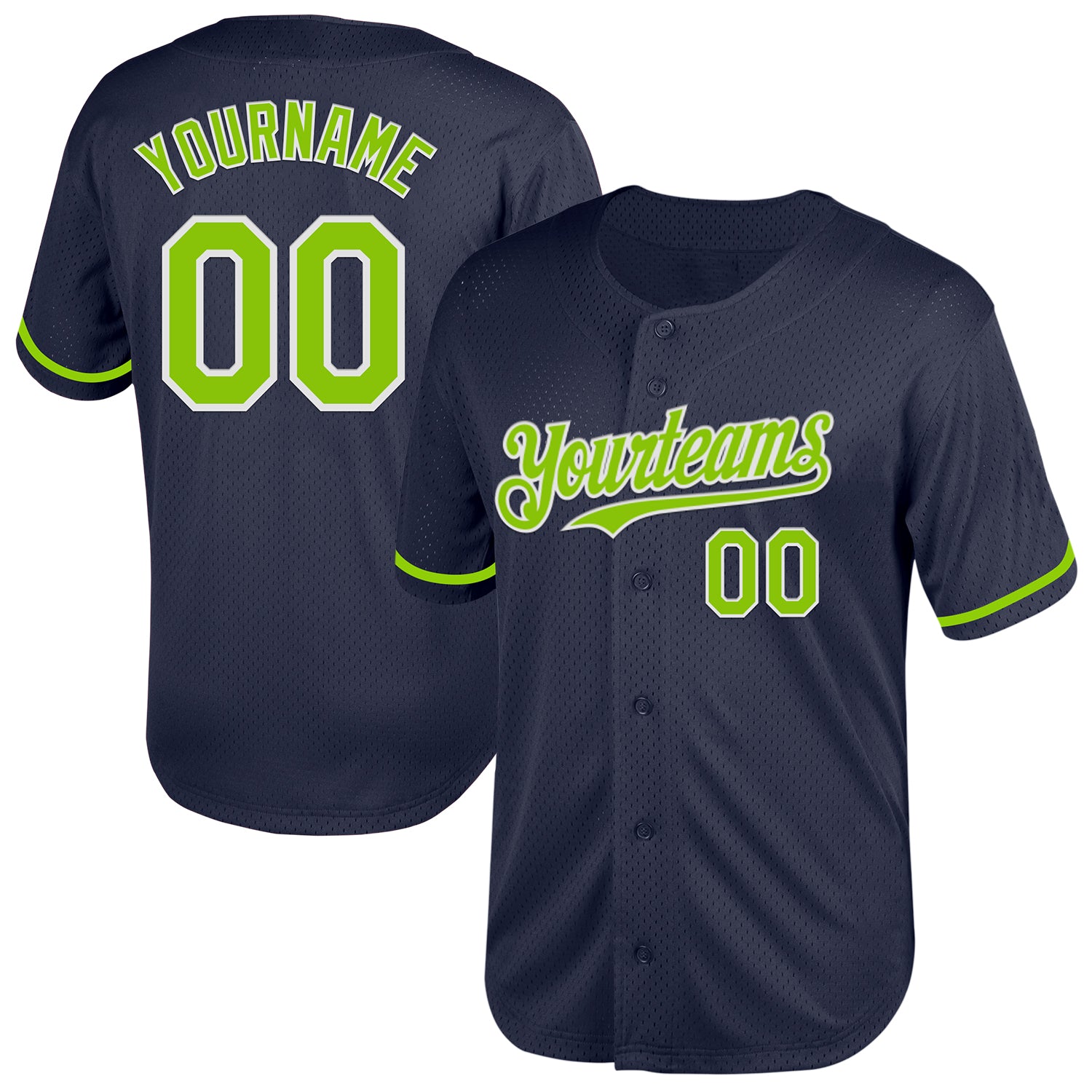 Custom Navy Neon Green-White Mesh Authentic Throwback Baseball Jersey