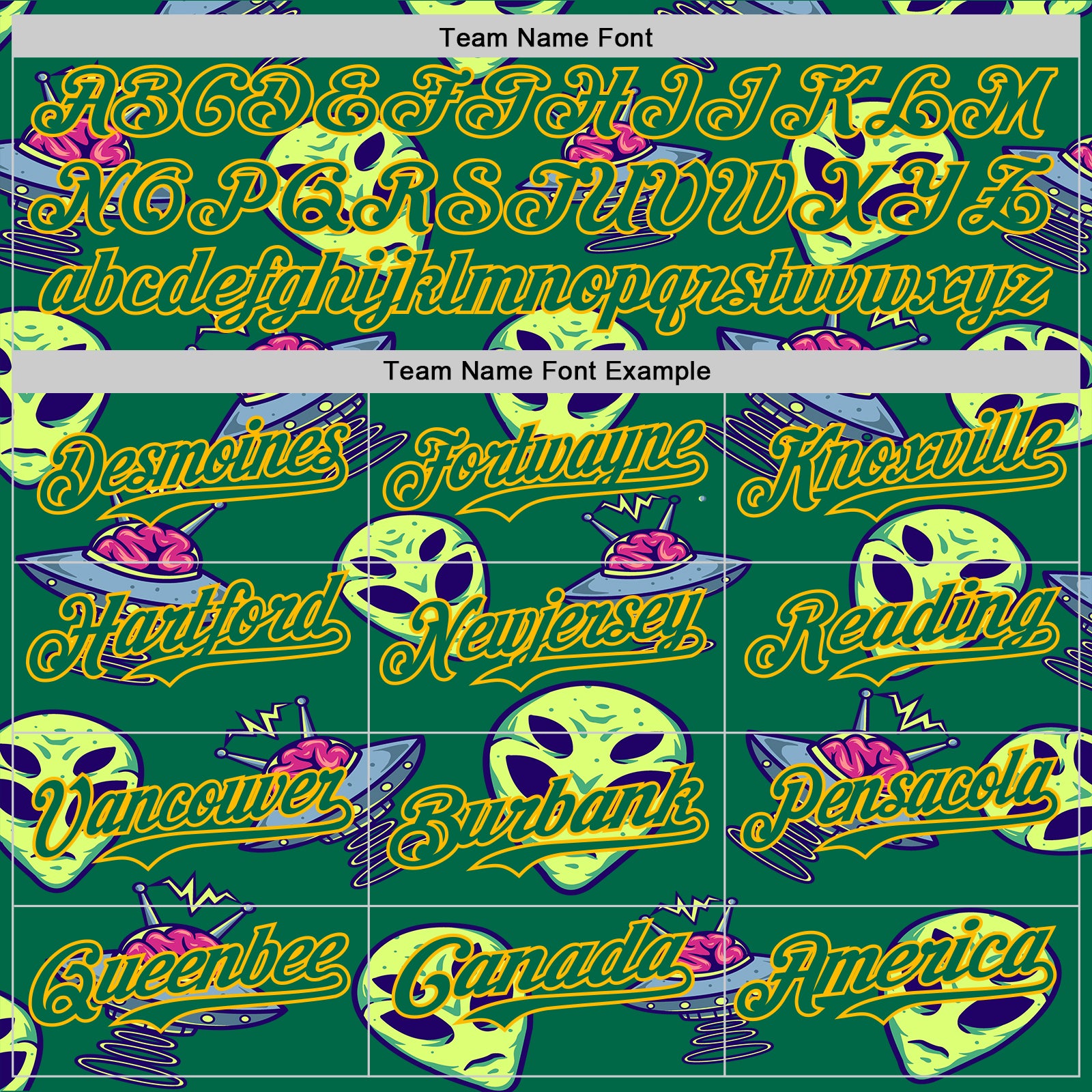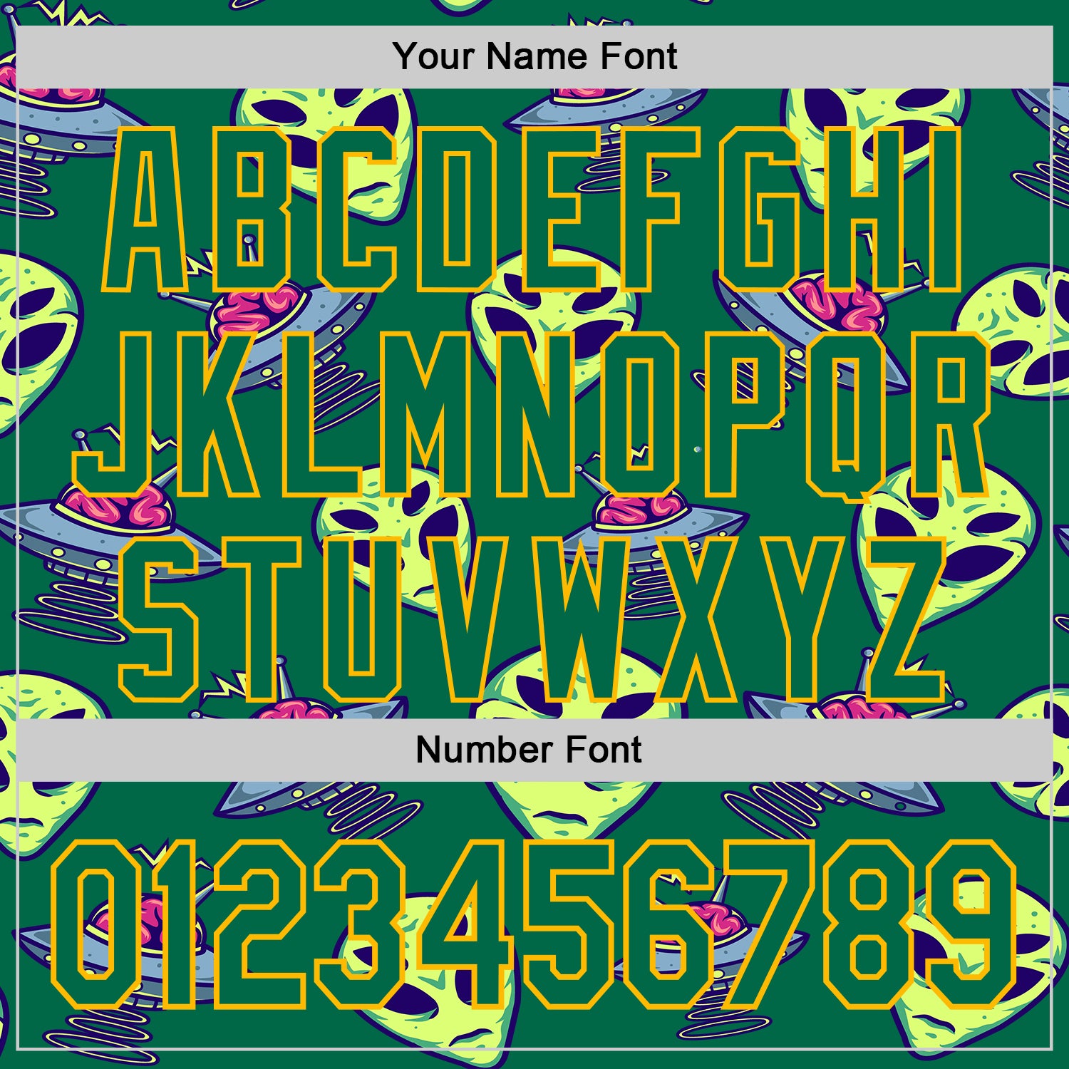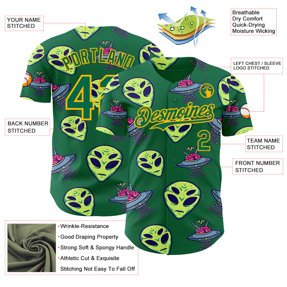 Custom Kelly Green Gold 3D Pattern Design Alien UFO Space Authentic Baseball Jersey
