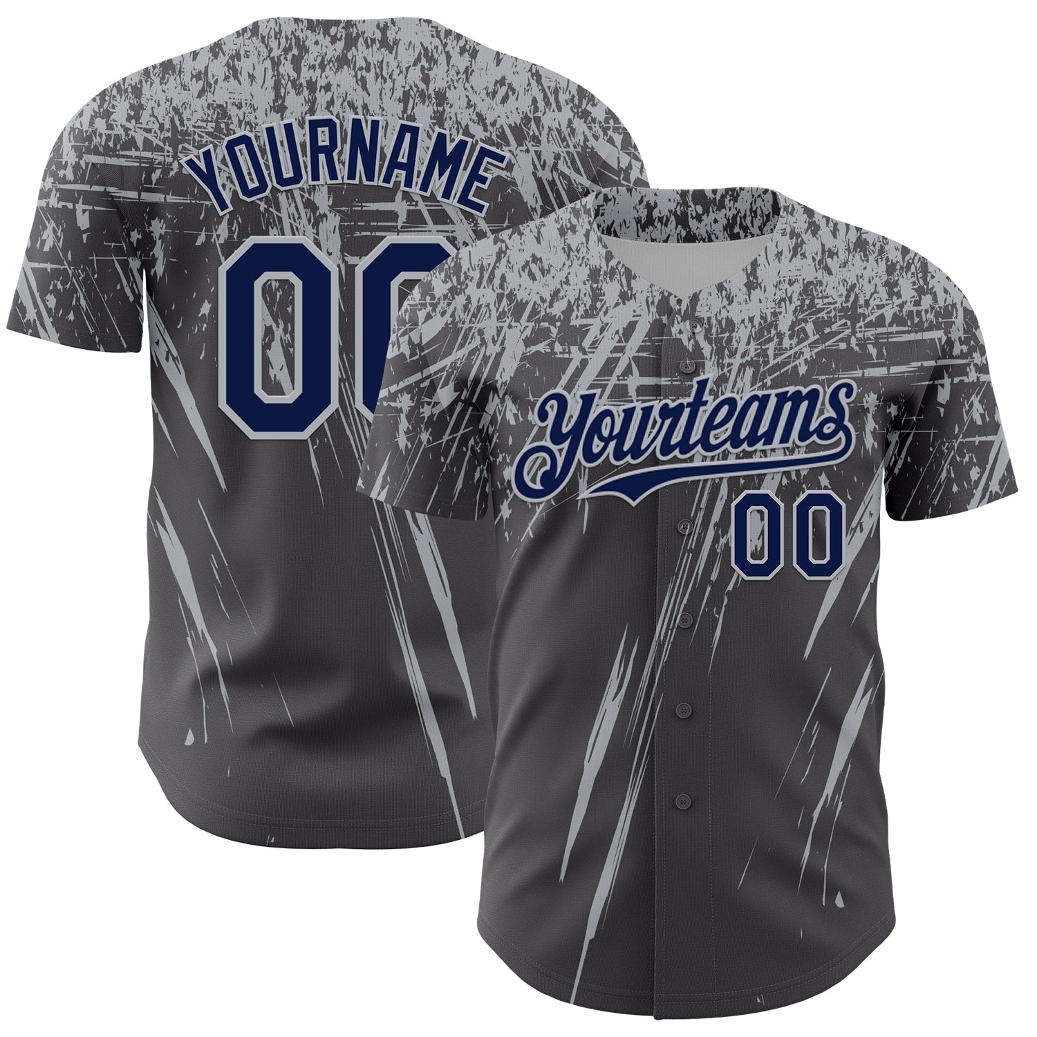 Custom Steel Gray Navy-Gray Distressed Scratch Brush Stroke Authentic Baseball Jersey