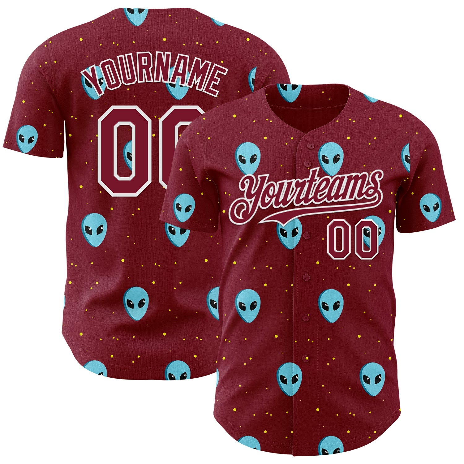 Custom Crimson White 3D Pattern Design Cartoon Alien Galaxy Authentic Baseball Jersey