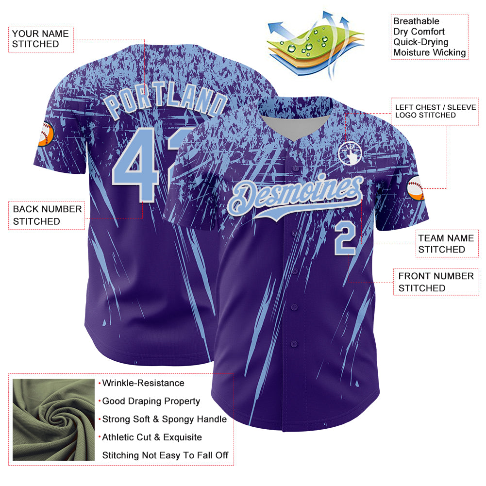 Custom Purple Light Blue-White Distressed Scratch Brush Stroke Authentic Baseball Jersey