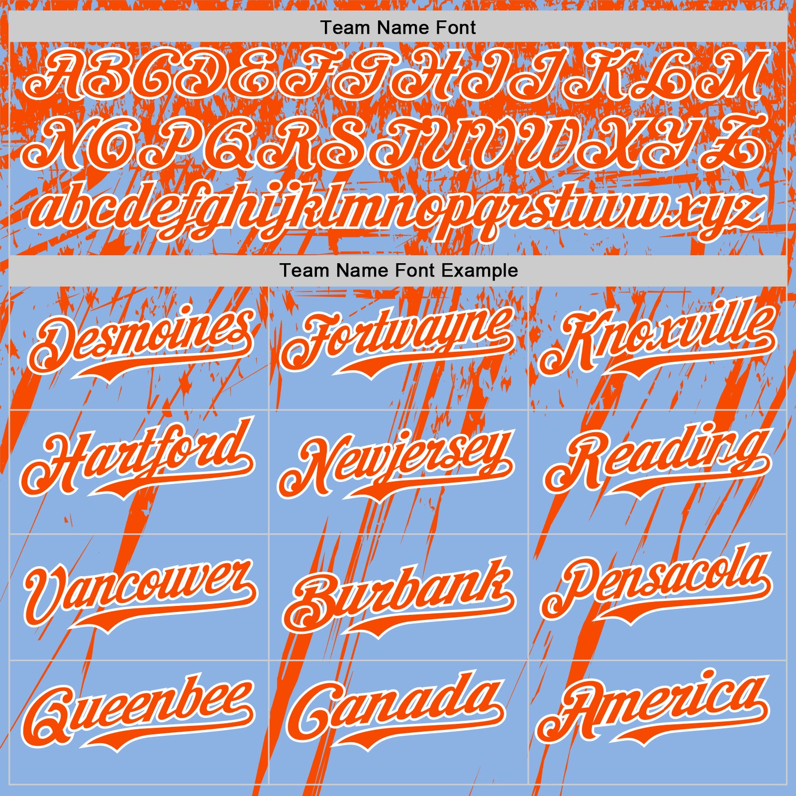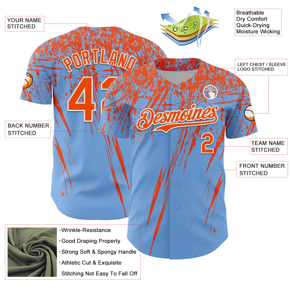 Custom Light Blue Orange-White Distressed Scratch Brush Stroke Authentic Baseball Jersey