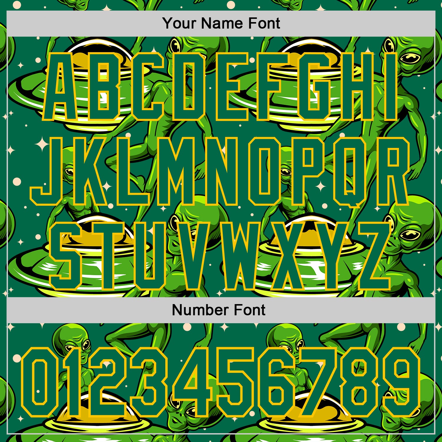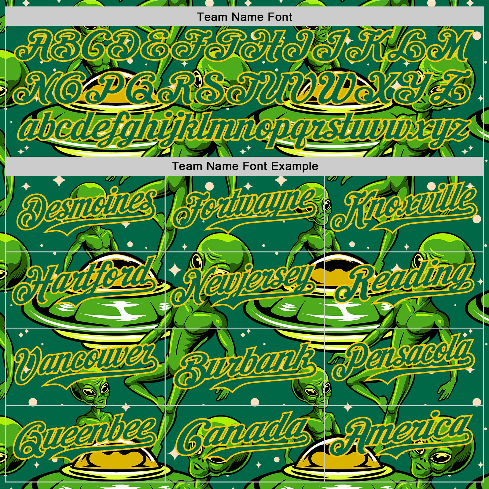 Custom Kelly Green Yellow 3D Pattern Design Alien UFO Galaxy Authentic Baseball Jersey