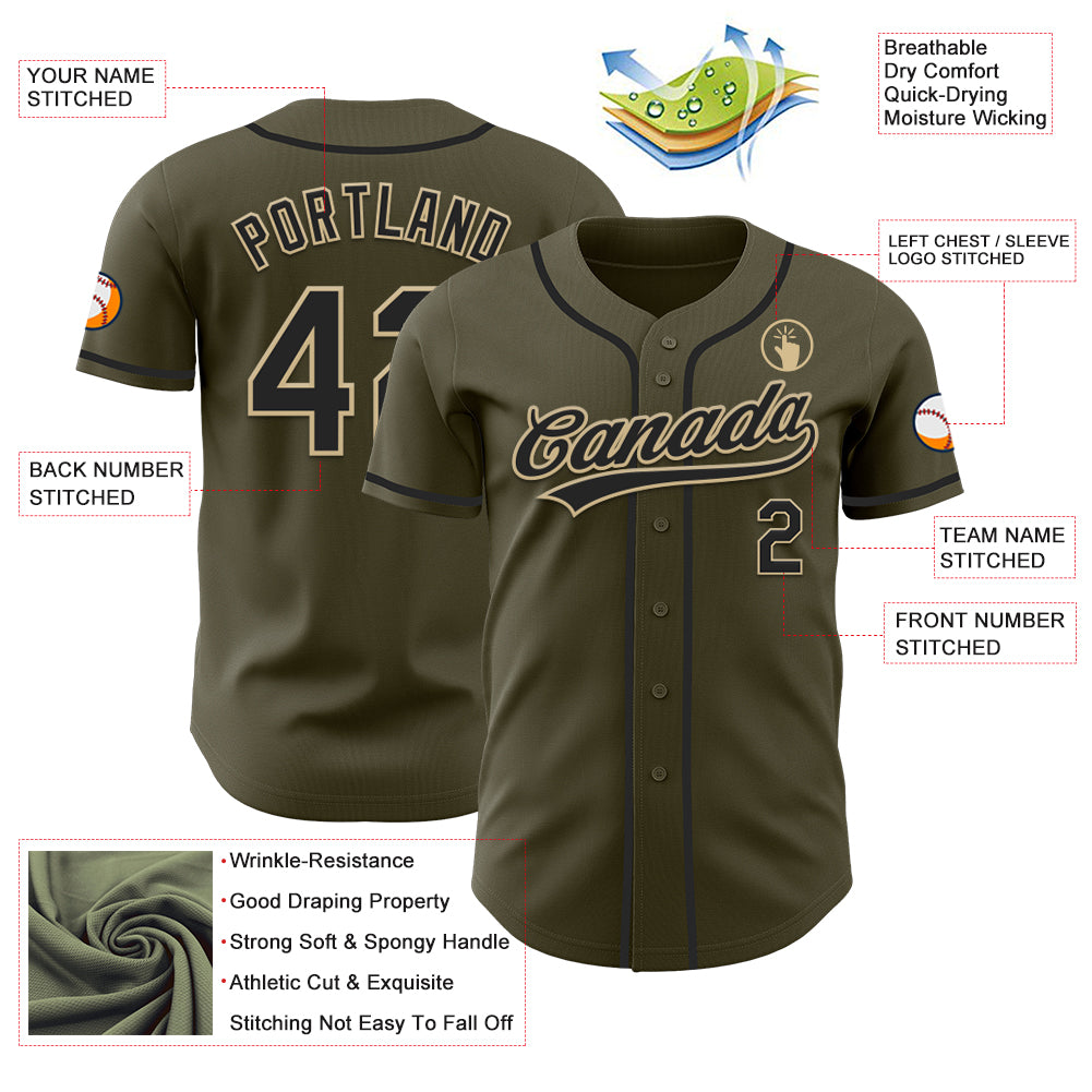 Custom Olive Black-Vegas Gold Authentic Salute To Service Baseball Jersey