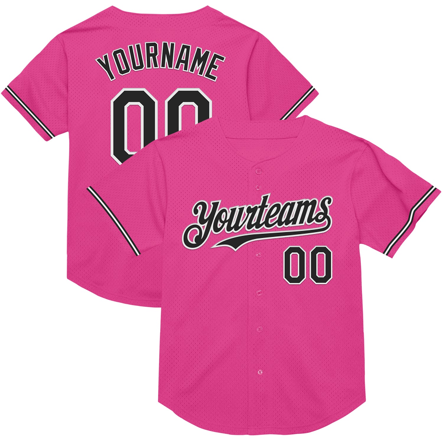 Custom Pink Black-White Mesh Authentic Throwback Baseball Jersey
