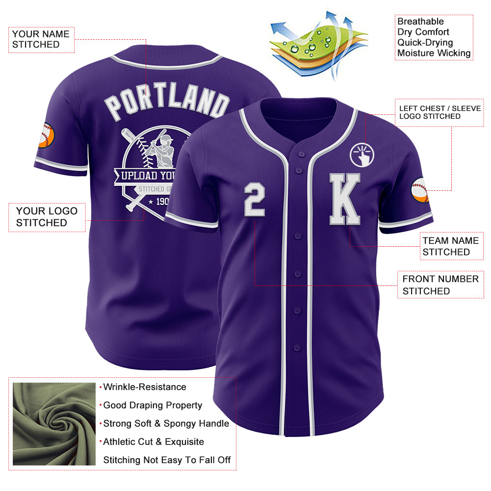 Custom Purple White-Gray Authentic Baseball Jersey