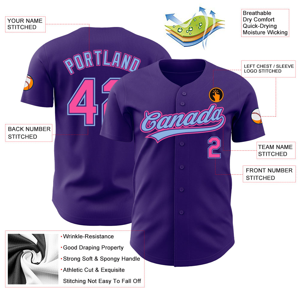 Custom Purple Pink-Light Blue Authentic Baseball Jersey