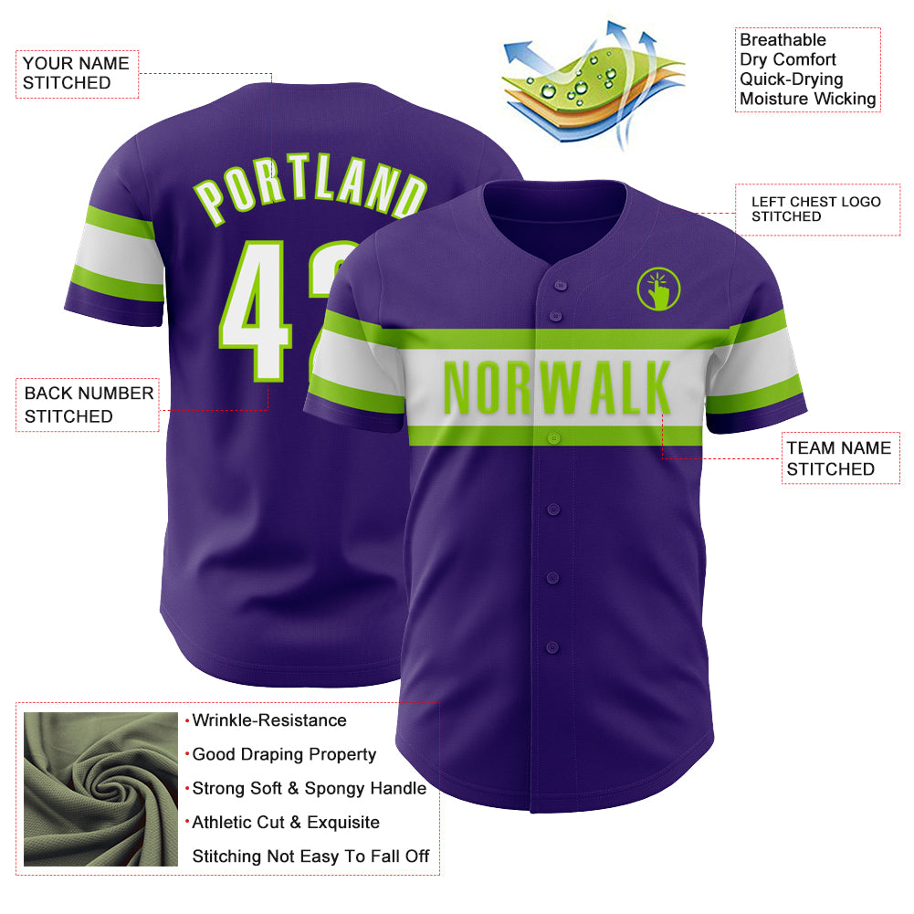 Custom Purple White-Neon Green Authentic Baseball Jersey