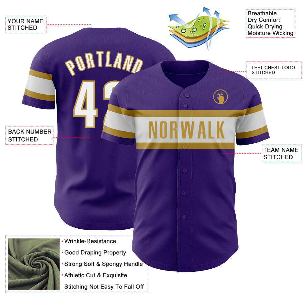 Custom Purple White-Old Gold Authentic Baseball Jersey