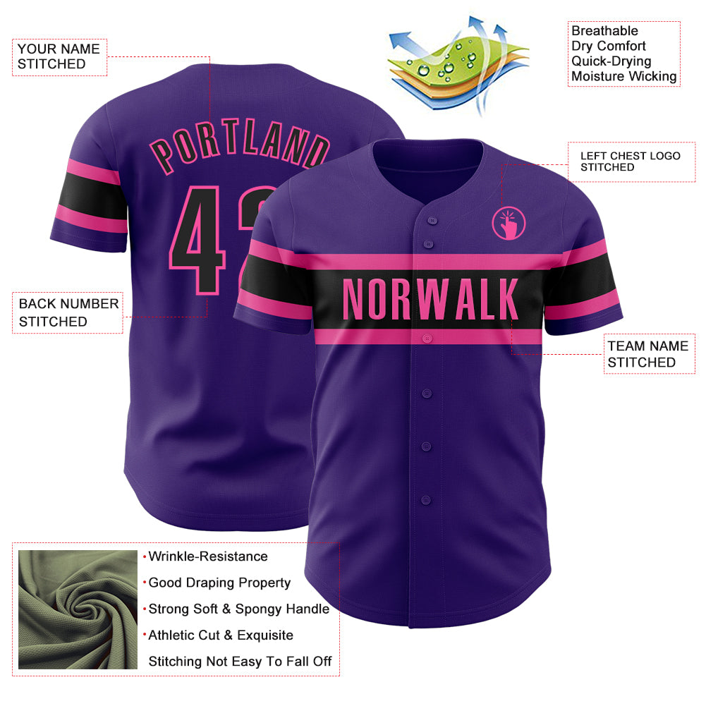 Custom Purple Black-Pink Authentic Baseball Jersey