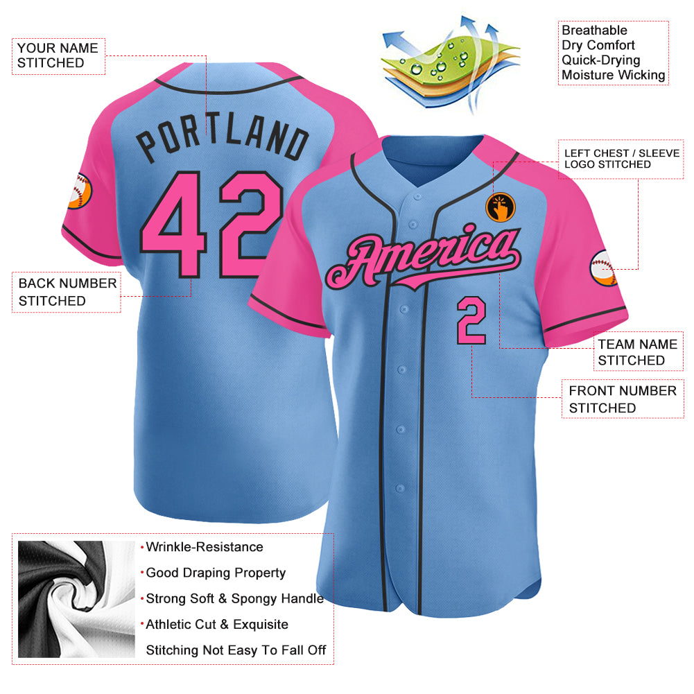 Custom Light Blue Pink-Black Authentic Raglan Sleeves Baseball Jersey