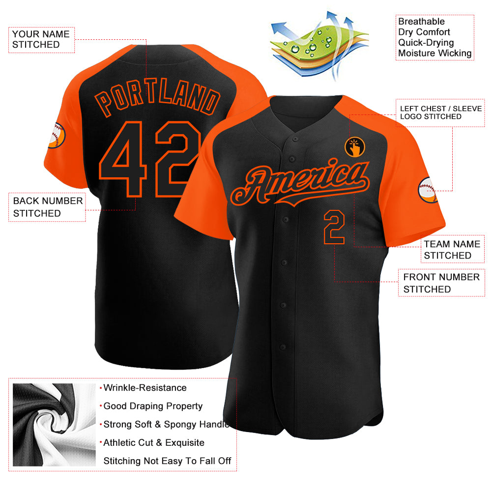 Custom Black Orange Authentic Raglan Sleeves Baseball Jersey