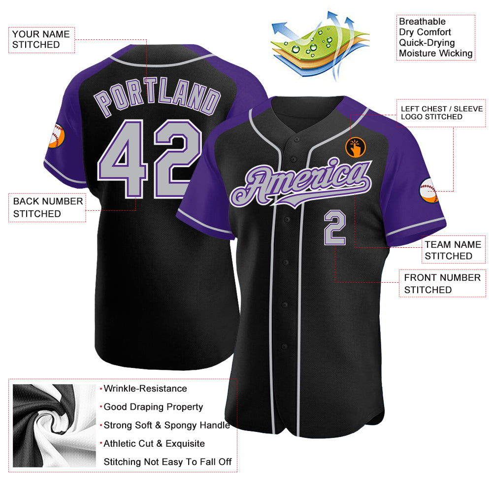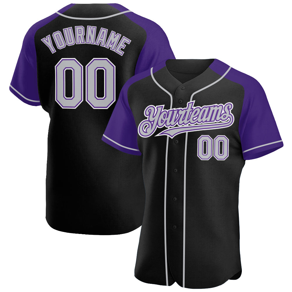 Custom Black Gray-Purple Authentic Raglan Sleeves Baseball Jersey