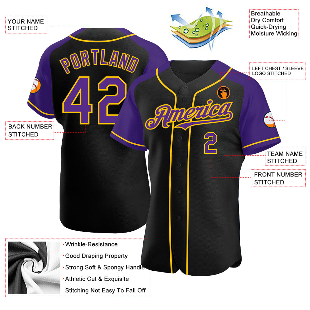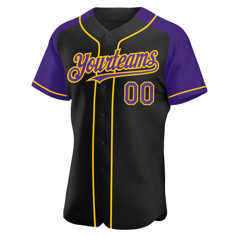 Custom Black Purple-Yellow Authentic Raglan Sleeves Baseball Jersey