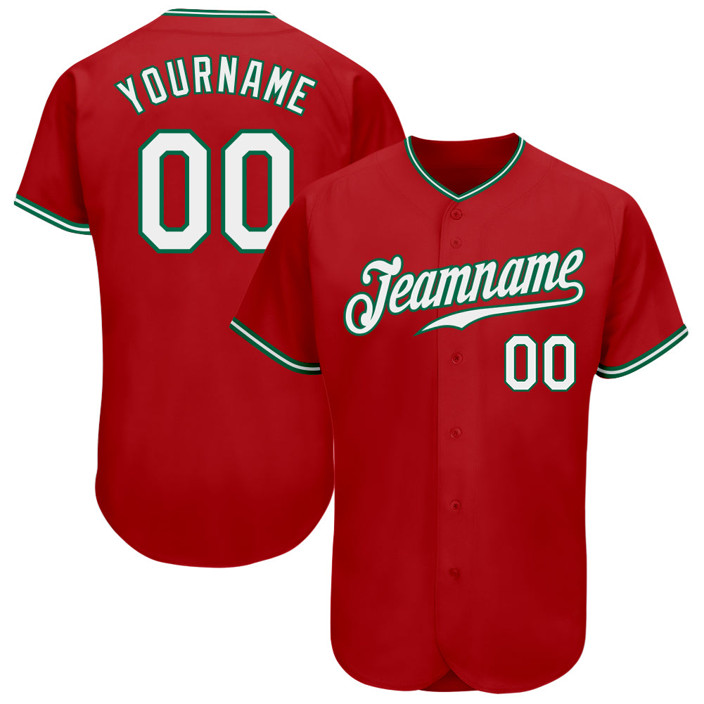 Custom Red White-Kelly Green Authentic Baseball Jersey