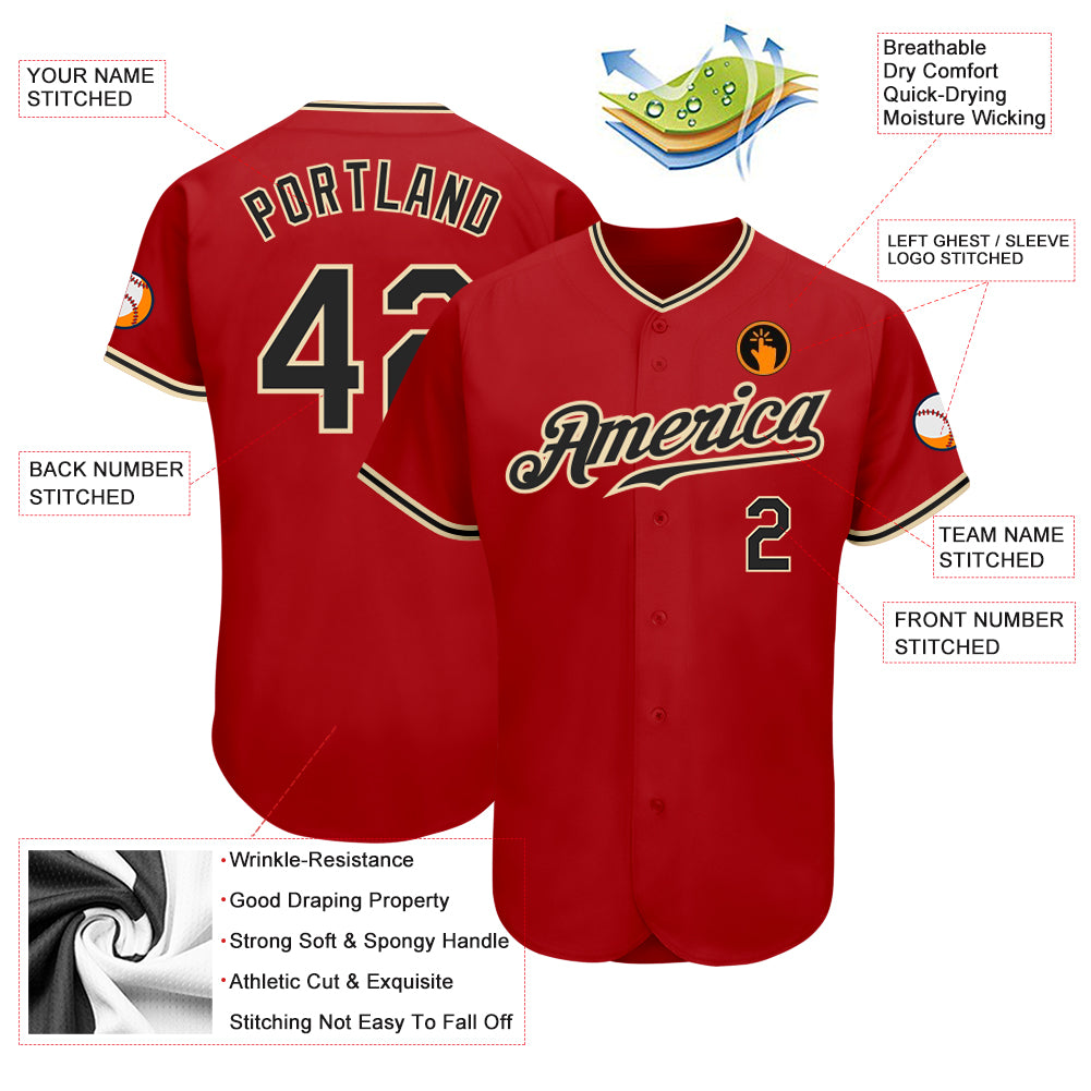 Custom Red Black-City Cream Authentic Baseball Jersey