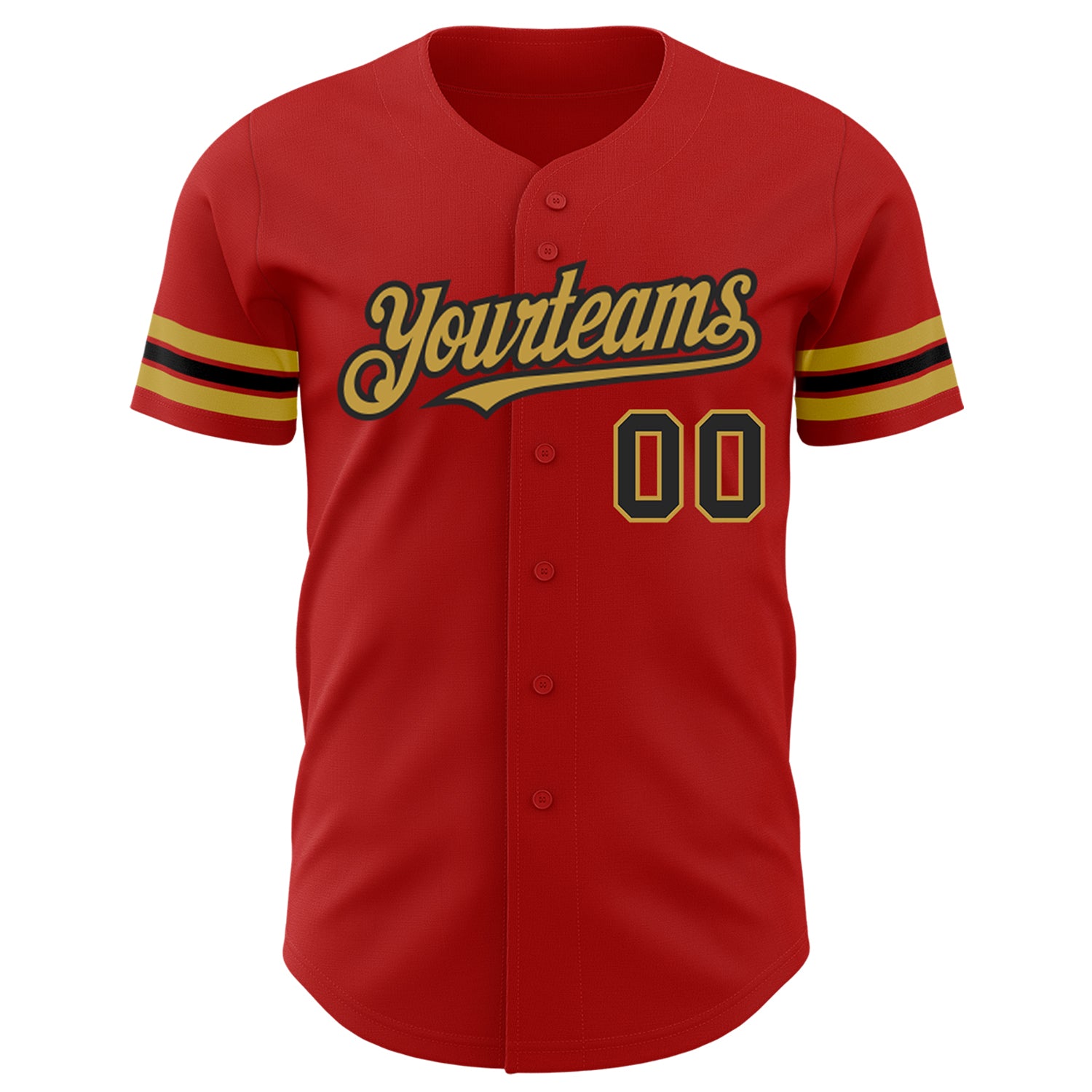 Custom Red Black-Old Gold Authentic Baseball Jersey