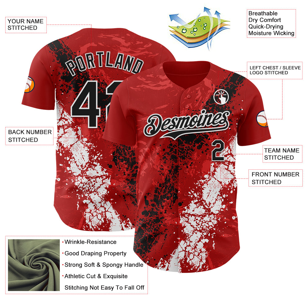 Custom Red Black-White 3D Pattern Design Splash Authentic Baseball Jersey