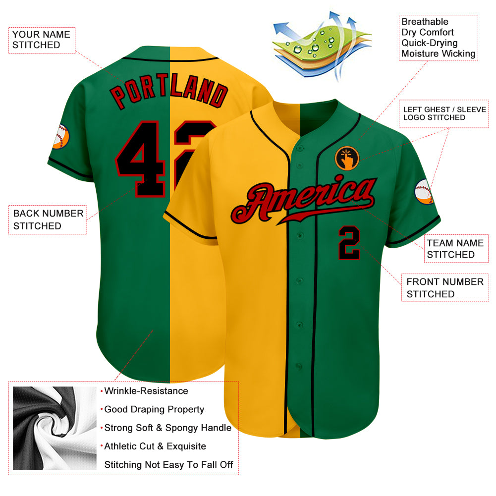 Custom Kelly Green Black-Yellow Authentic Split Fashion Baseball Jersey