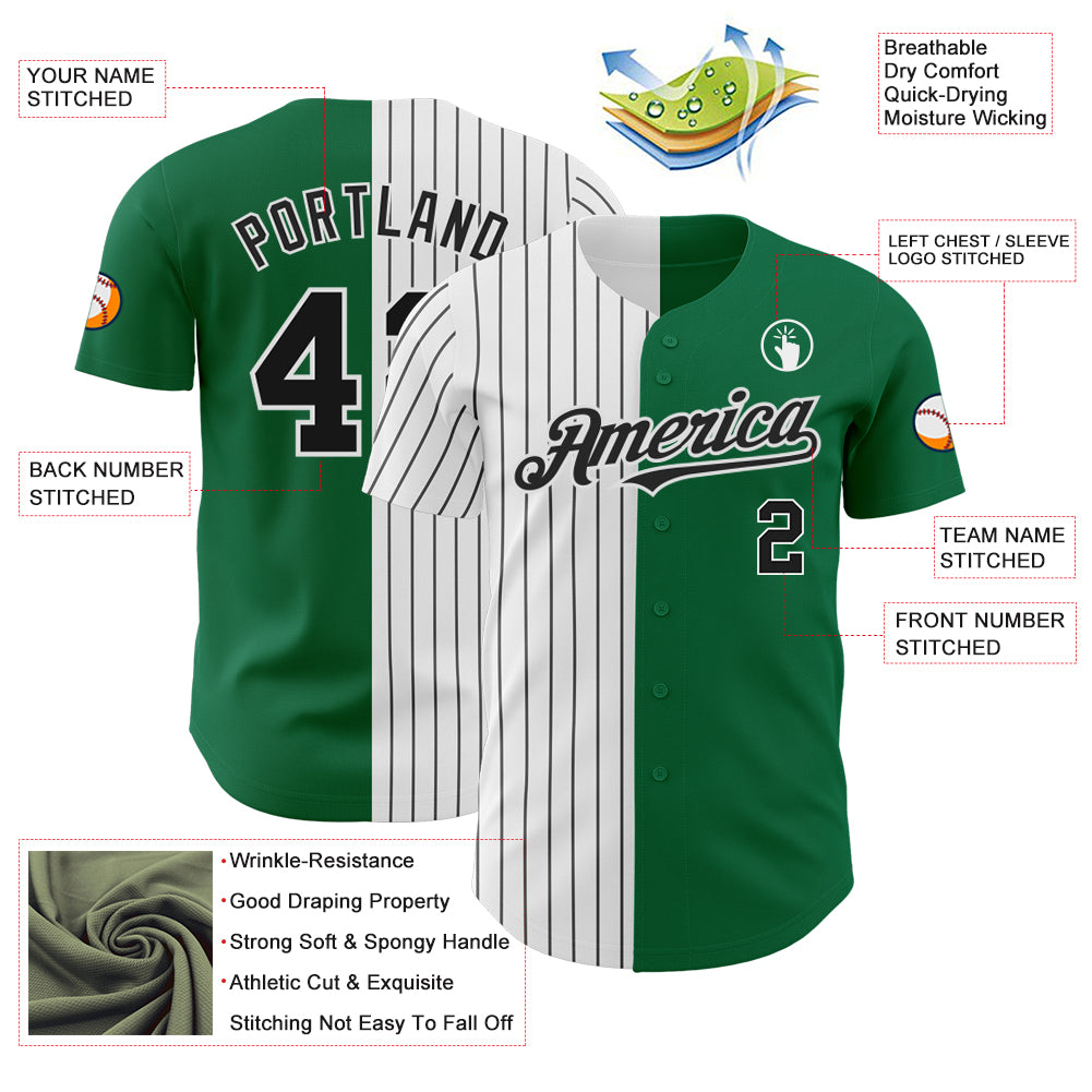 Custom Kelly Green White-Black Pinstripe Authentic Split Fashion Baseball Jersey