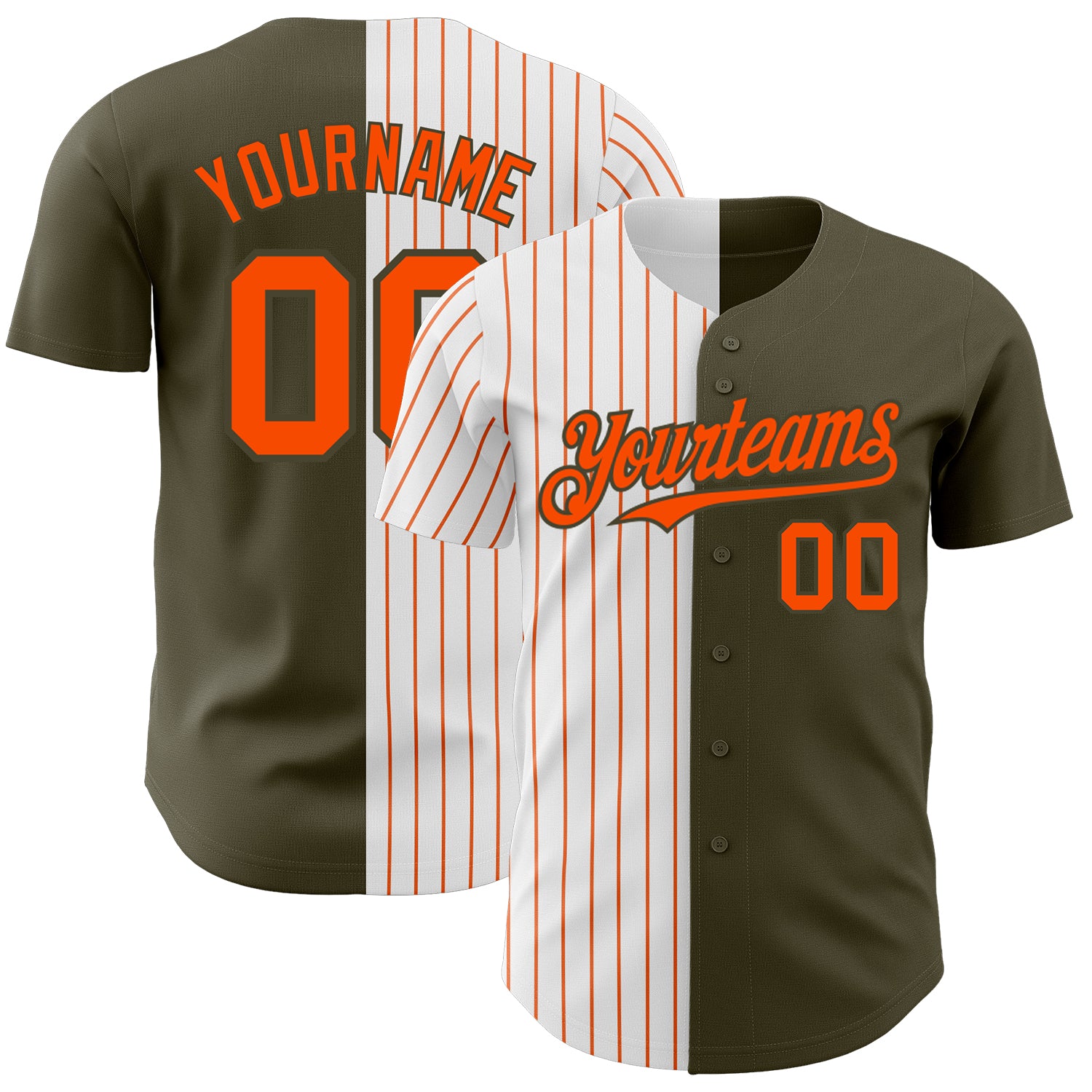 Custom Olive White-Orange Pinstripe Authentic Split Fashion Salute To Service Baseball Jersey