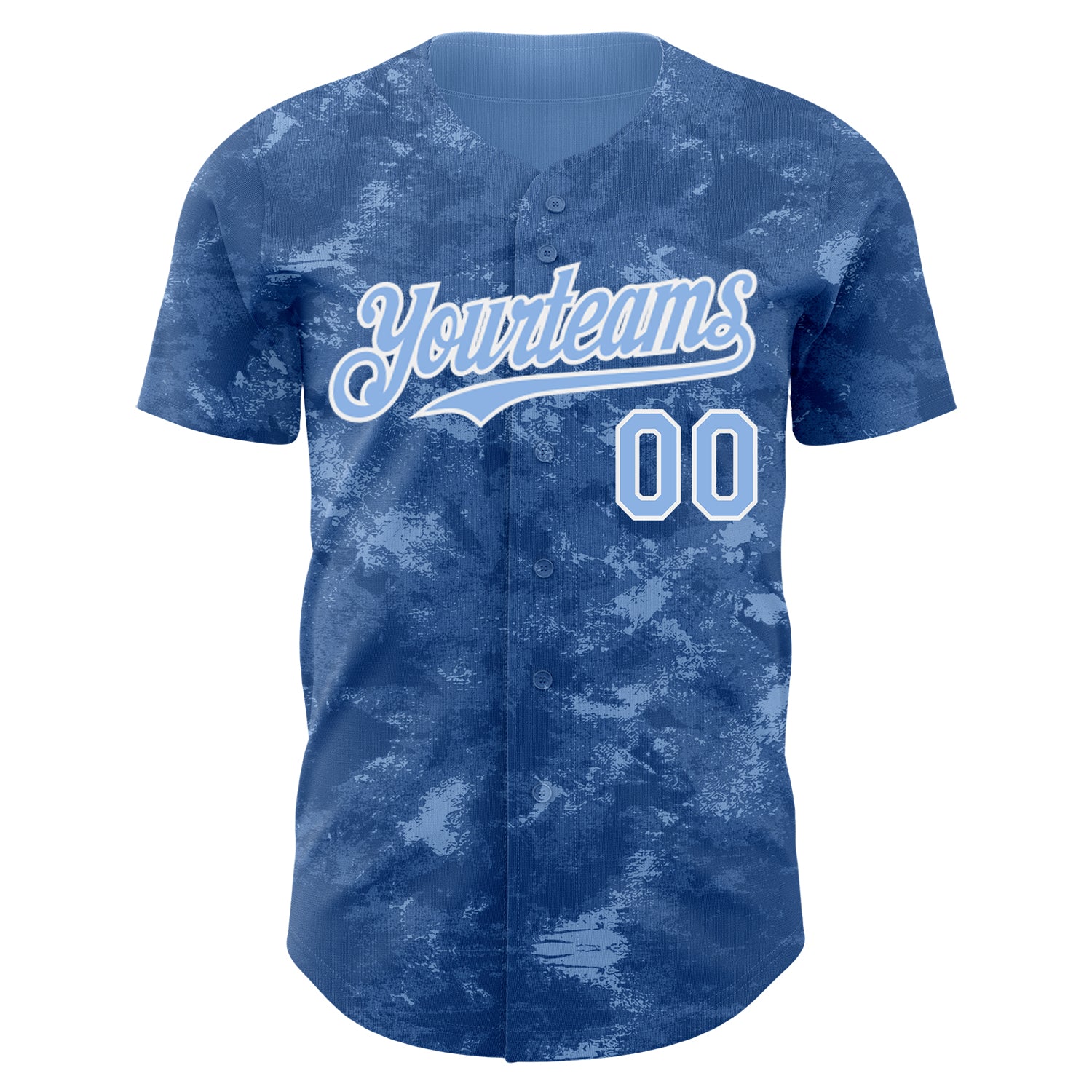Custom Tie Dye Light Blue-White 3D Authentic Baseball Jersey