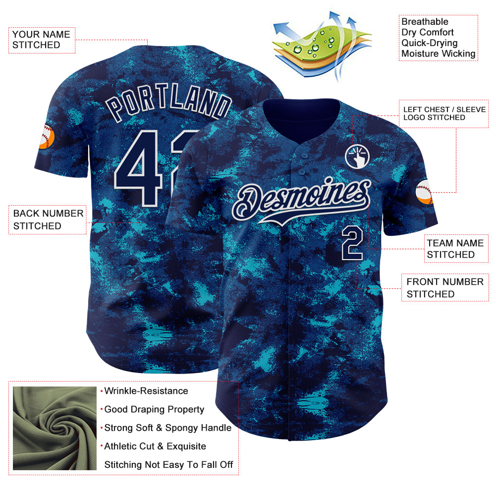 Custom Tie Dye Navy-White 3D Authentic Baseball Jersey