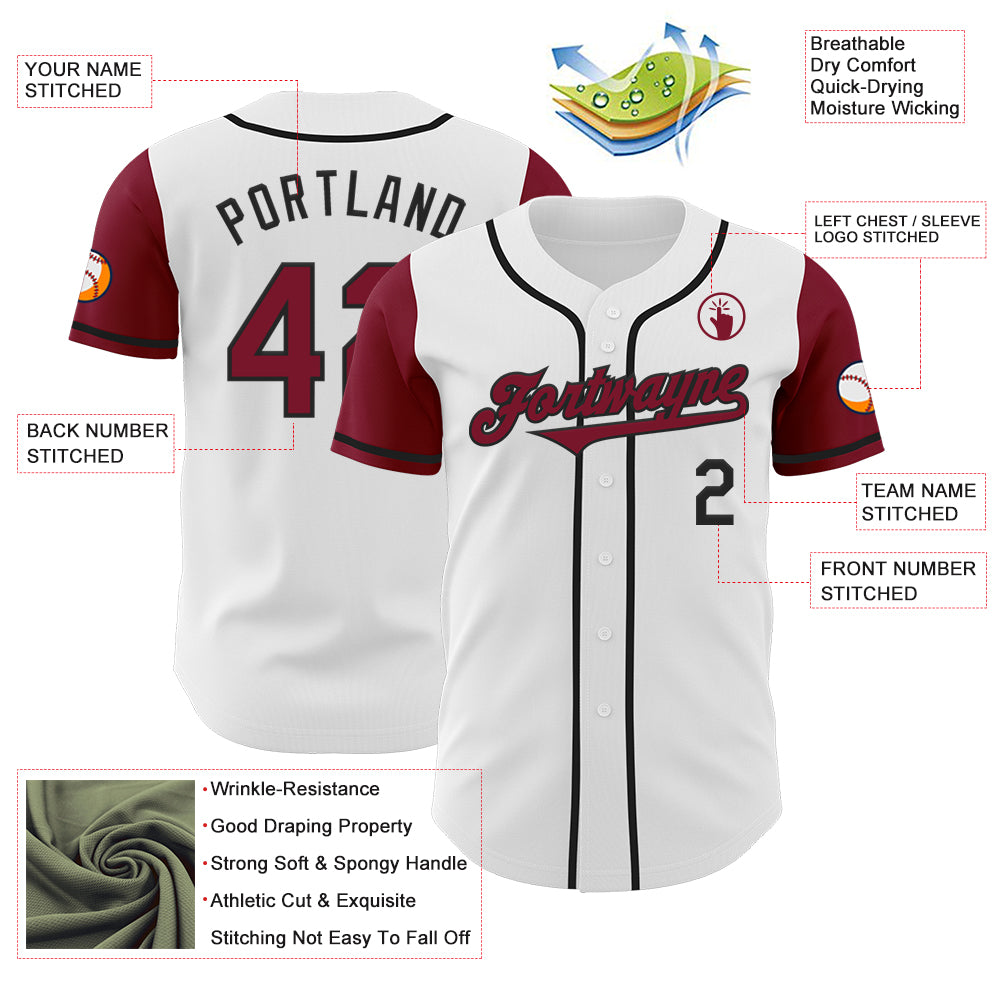 Custom White Crimson-Black Authentic Two Tone Baseball Jersey