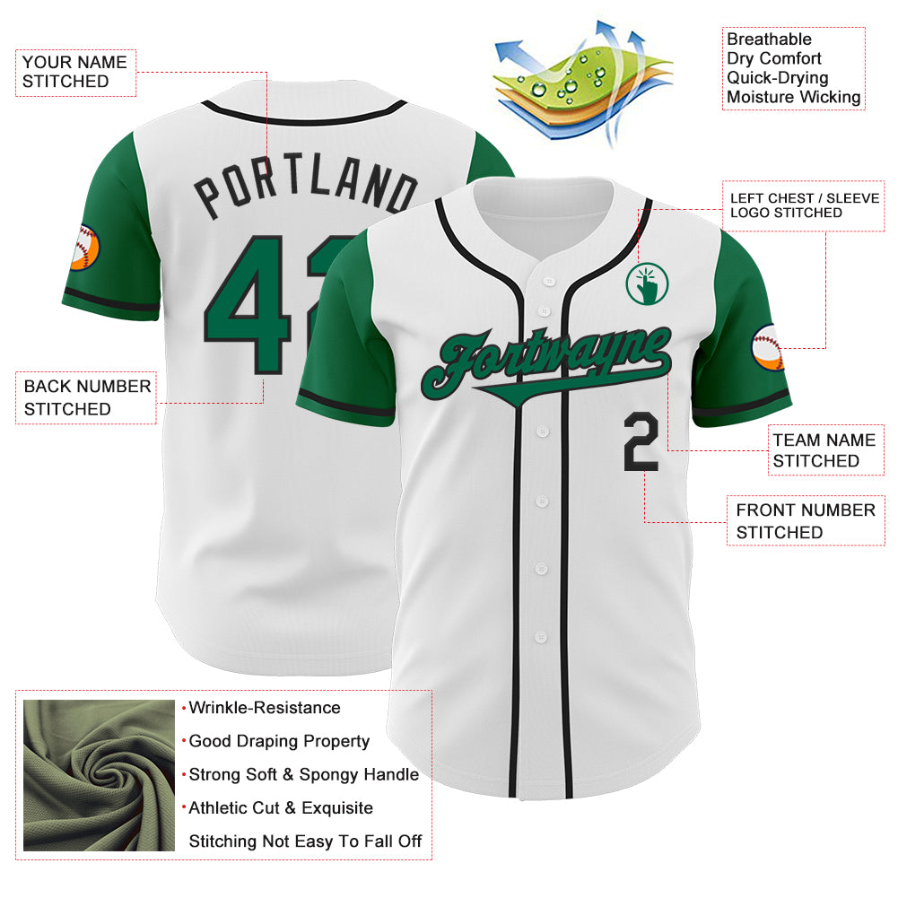 Custom White Kelly Green-Black Authentic Two Tone Baseball Jersey