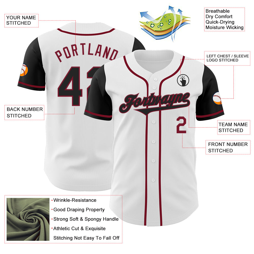 Custom White Black-Crimson Authentic Two Tone Baseball Jersey