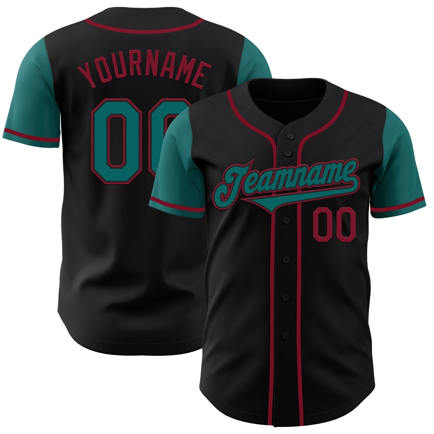 Custom Black Teal-Crimson Authentic Two Tone Baseball Jersey