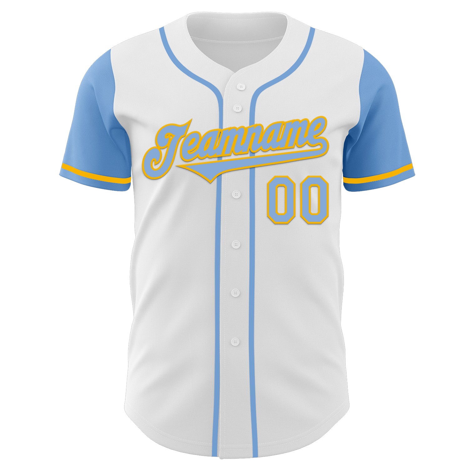 Custom White Light Blue-Gold Authentic Two Tone Baseball Jersey
